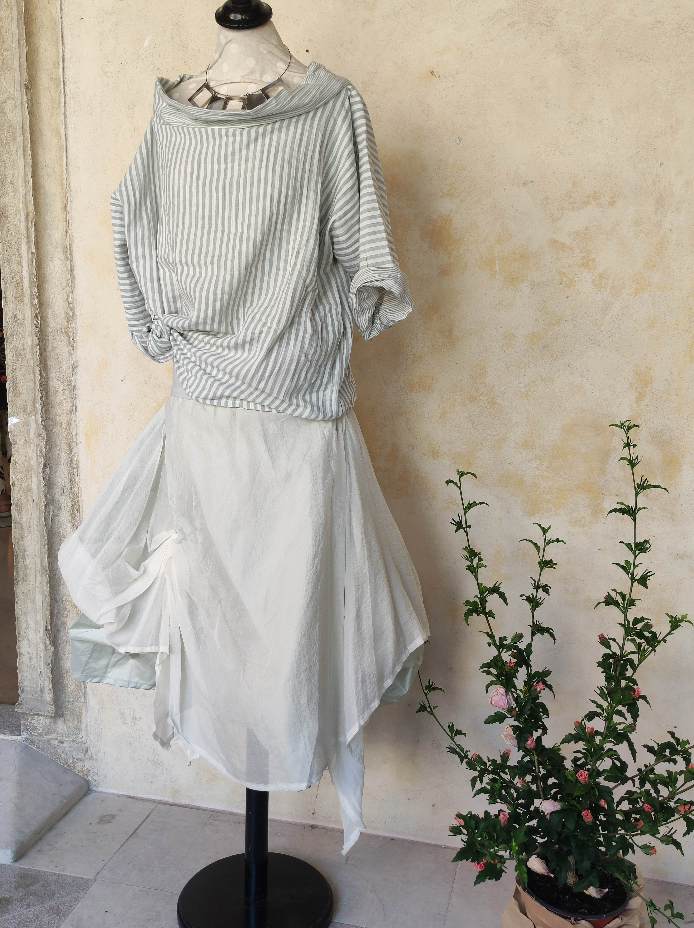I miei capi sono tutti senza taglia, perché voglio che si adattino a diverse tipologie di fisico e che facciano sentire libere di muoversi ed a proprio agio.